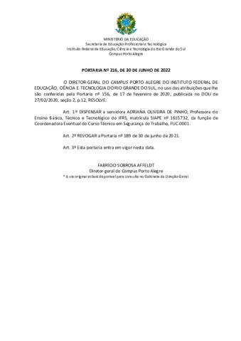 Portaria 216/2022