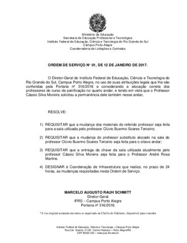 Ordem de Serviço 01/2017